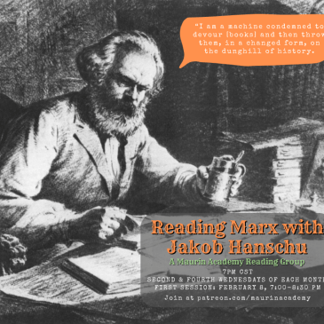 If you’d like to get in on the ground floor of our Marx Reading Group, guided by Jakob Hanschu, it starts tomorrow. You can gain access to all sessions by joining at any level on Patreon: https://patreon.com/maurinacademy?utm_medium=clipboard_copy&utm_source=copyLink&utm_campaign=creatorshare_creator&utm_content=join_link … More Marx Reading Group Starts Tomorrow!